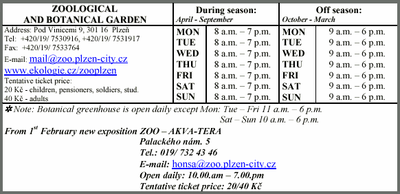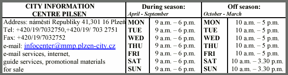 Up-dated by the City Information Centre Pilsen on the 25th March 2001.